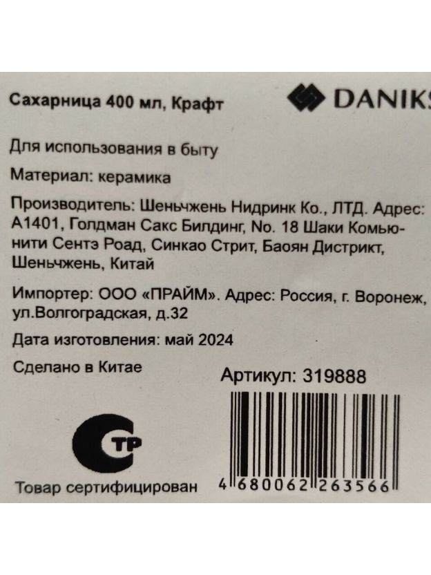 Сахарница 400 мл, керамика, Daniks, Крафт, A23693Y101
