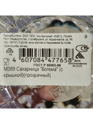 Какой размер у сахарницы Альтернатива Богема М389?