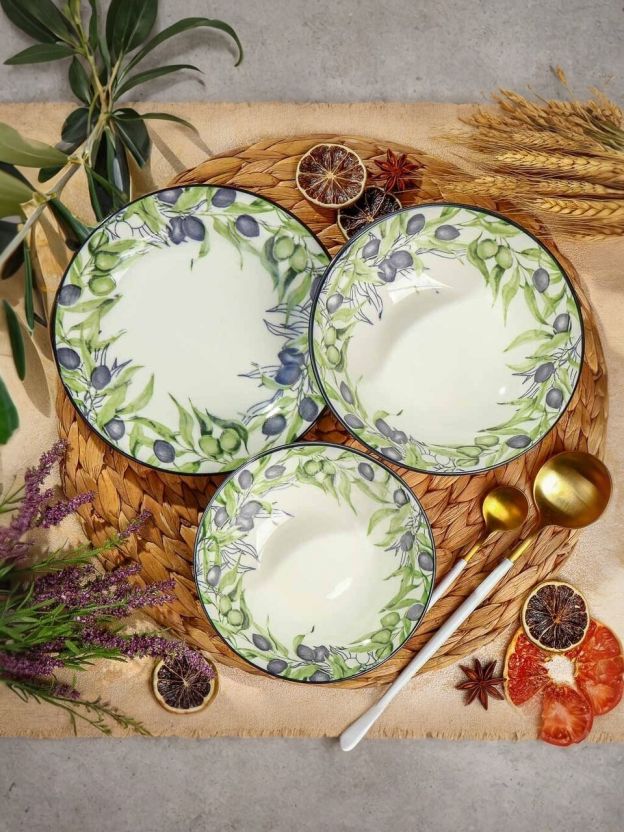 - Эксклюзивный дизайн с рисунком веток оливы — создаёт атмосферу уюта и стиля на вашем столе