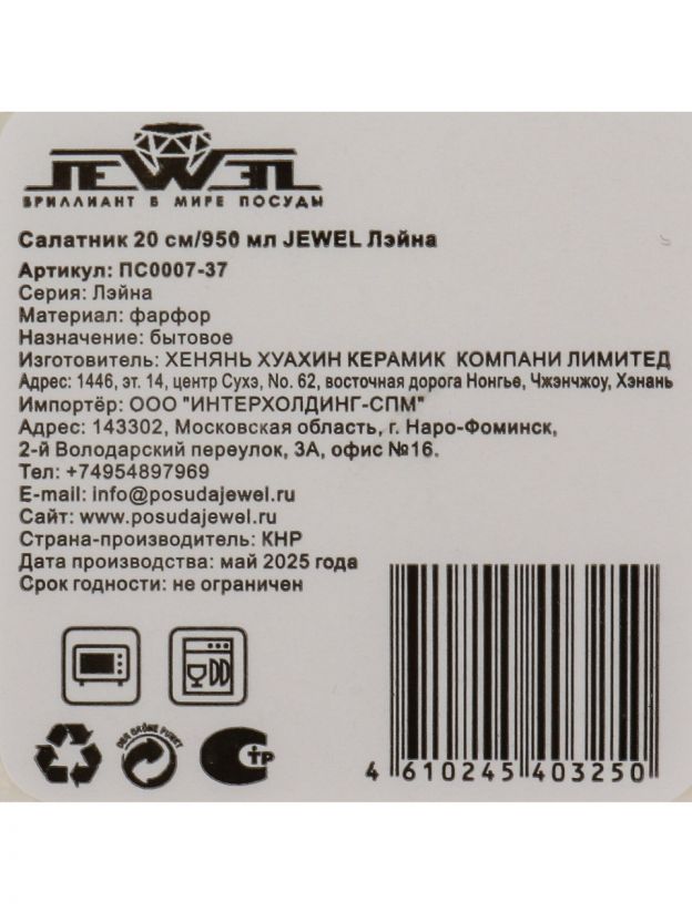 Да, фарфоровый салатник Jewel Лейна подходит для разогрева и приготовления блюд в СВЧ — материал не трескается и не выделяет запахов.