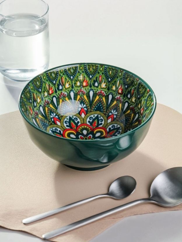 Салатник керамический 12,5 см "Самарканд" — универсальная чаша 0,37 л для сервировки и хранения, подходит для дома, дачи и подарка. Зеленый дизайн, можно мыть в посудомоечной машине.