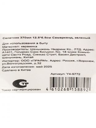 Да, керамический салатник "Самарканд" безопасно мыть в посудомоечной машине — керамика устойчива к перепадам температуры и не трескается при регулярном использовании.