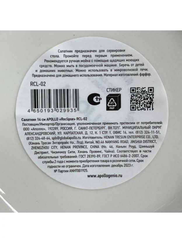 Какой размер у салатника Apollo Eclipse и для чего он подходит?