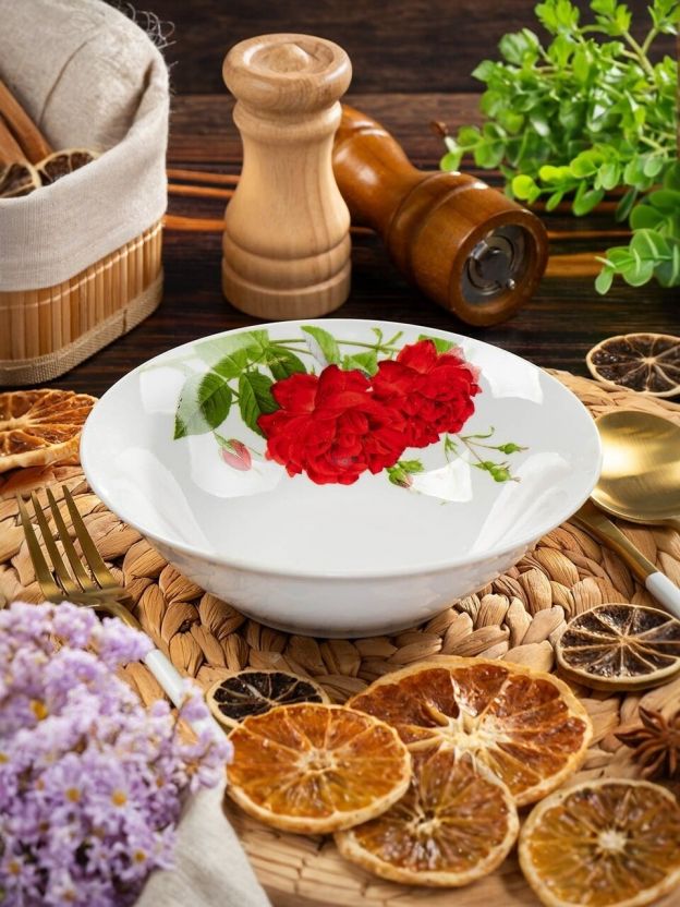 Часто спрашивают, как выбрать салатник для дачи или что лучше для сервировки на каждый день. В отличие от пластиковых и стеклянных аналогов, керамика дольше сохраняет температуру блюда и не впитывает запахи. Модель «Алая роза» подходит для использования в микроволновке, что удобно для разогрева. Если вы ищете недорогой салатник с ярким рисунком, этот вариант оптимален по соотношению цена-качество.