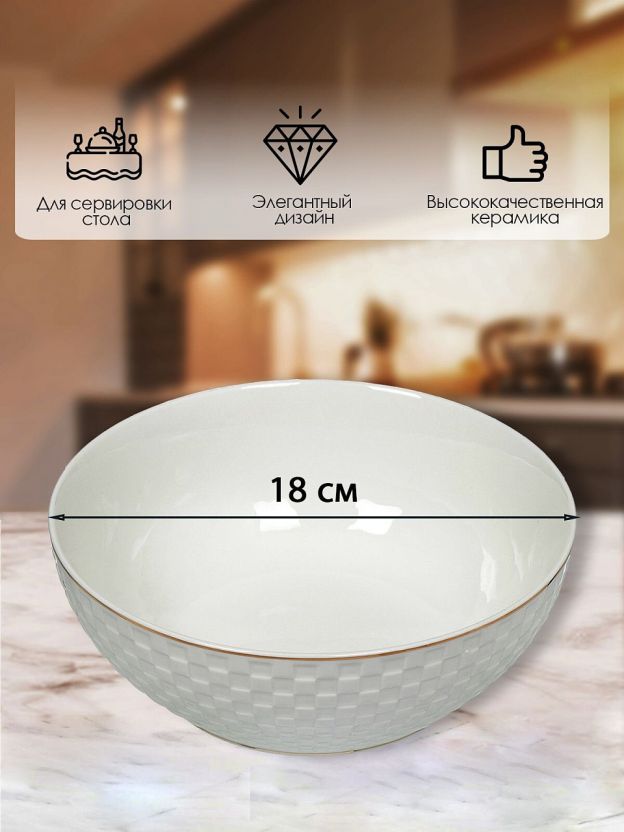 • Элегантный дизайн с золотой окантовкой — акцент на премиальном внешнем виде, который выделяет салатник среди аналогов.