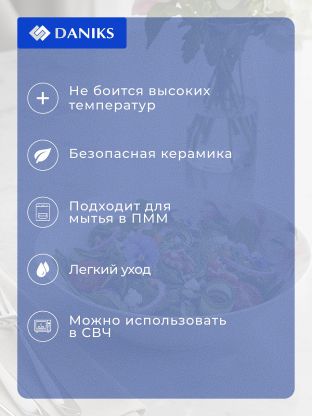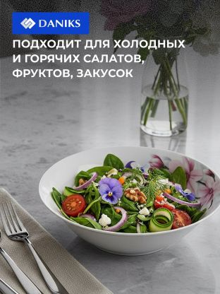 Как использовать салатник Daniks? Он подходит для подачи салатов, гарниров, фруктов, а также для разогрева блюд в СВЧ. Круглая форма облегчает смешивание ингредиентов и мытьё. Отсутствие крышки компенсируется лёгкостью хранения и универсальностью применения.