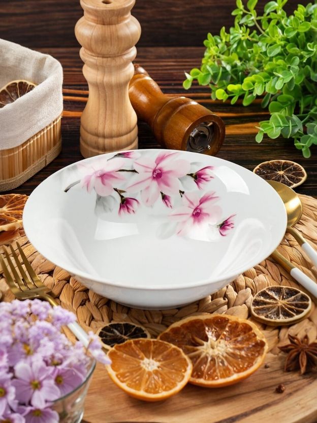 - Уникальный дизайн с цветочным рисунком — салатник гармонично впишется в современный интерьер кухни или станет акцентом сервировки.
