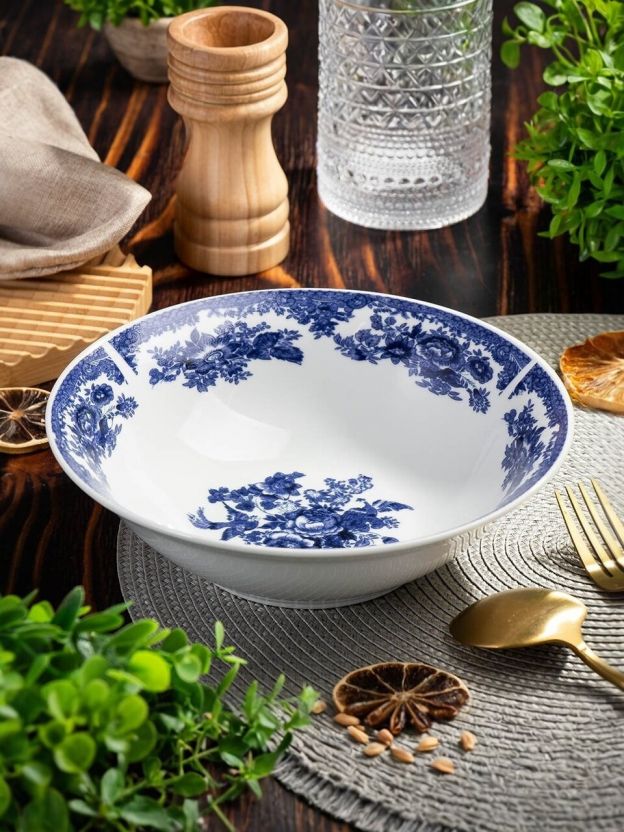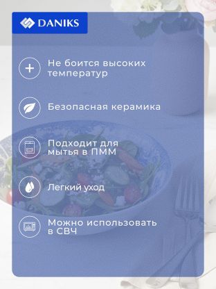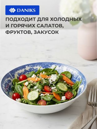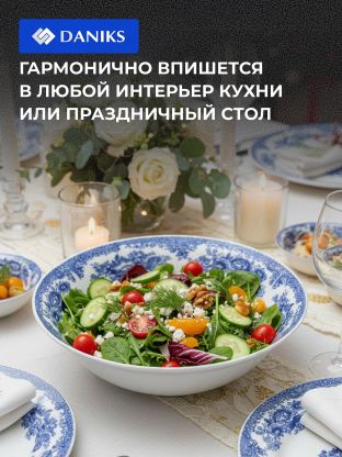 Керамический салатник Daniks «Жар-Птица» — это не просто посуда, а элемент декора в стиле кантри, который делает подачу блюд особенной. Благодаря прочной керамике, чашу удобно использовать для холодных и горячих салатов, фруктов, закусок. Синий цвет и изящный рисунок с цветами гармонируют с современными и классическими интерьерами. Если вы ищете, какой салатник выбрать для дачи или подарка, обратите внимание на сочетание функциональности и эстетики.