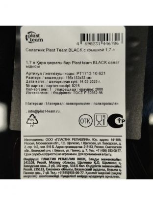 Салатник Plast team Black — это универсальная пластиковая емкость с крышкой, которую легко купить недорого для дачи или дома. Благодаря объему 1.7 литра и диаметру 18.2 см, он подойдет для хранения свежих овощей, приготовления и подачи салатов, а также транспортировки готовых блюд на работу или пикник. Крышка плотно закрывается, сохраняя продукты свежими и защищая от запахов в холодильнике.