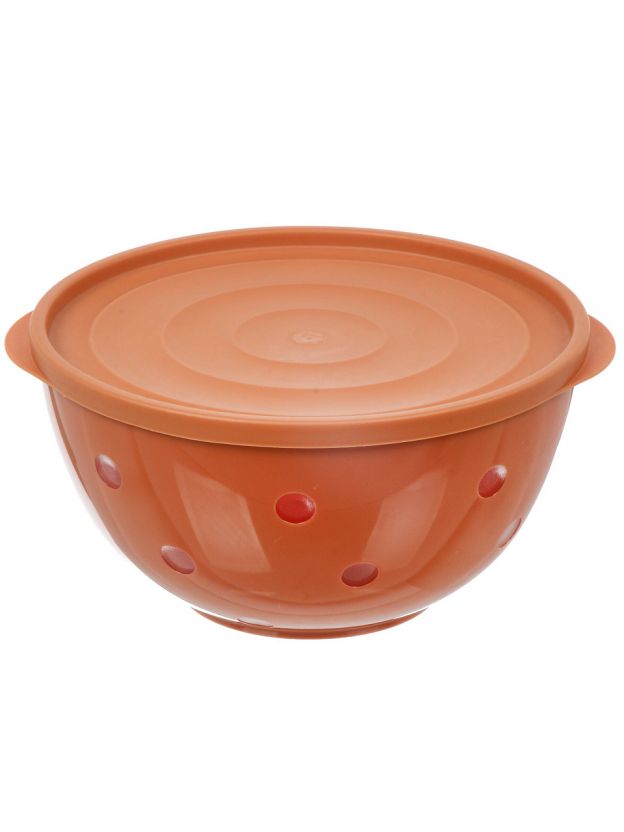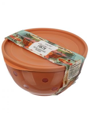 Салатник пластик, круглый, 19.7х10.4 см, 2 л, с крышкой, Оливье по ГОСТу, Berossi, ИК 61496000, кирпичный