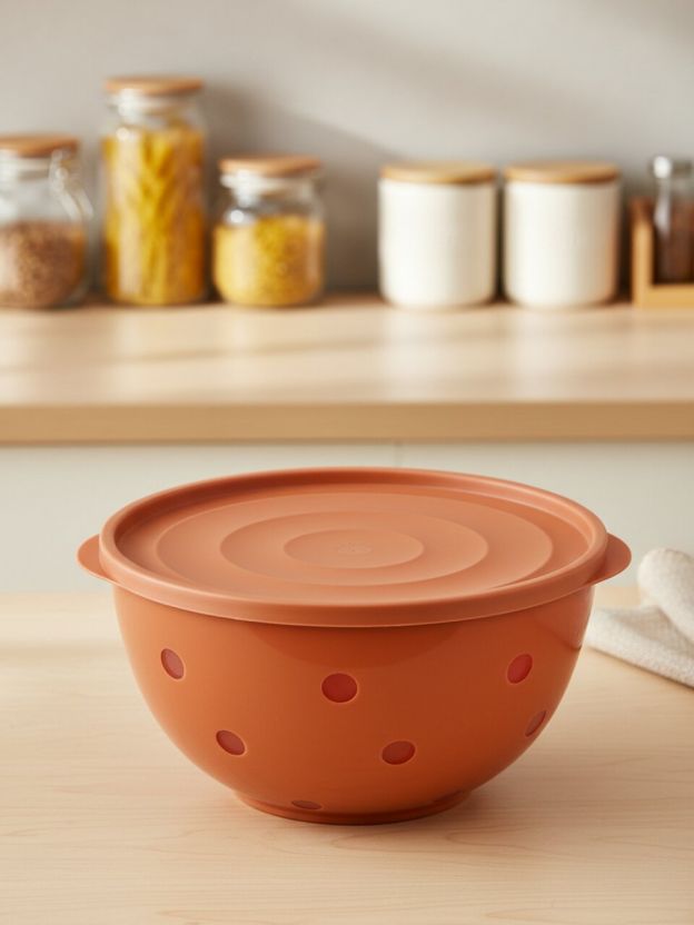 В комплекте идёт плотная пластиковая крышка, которая хорошо закрывает салатник и сохраняет свежесть продуктов при хранении в холодильнике.
