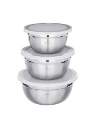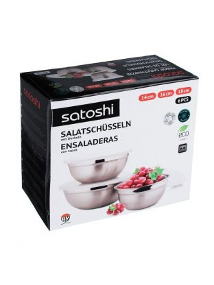 Салатник сталь, круглый, 3 шт, 14, 16, 18 см, 0.8, 1.2, 1.5 л, с крышкой, Satoshi, 812-080