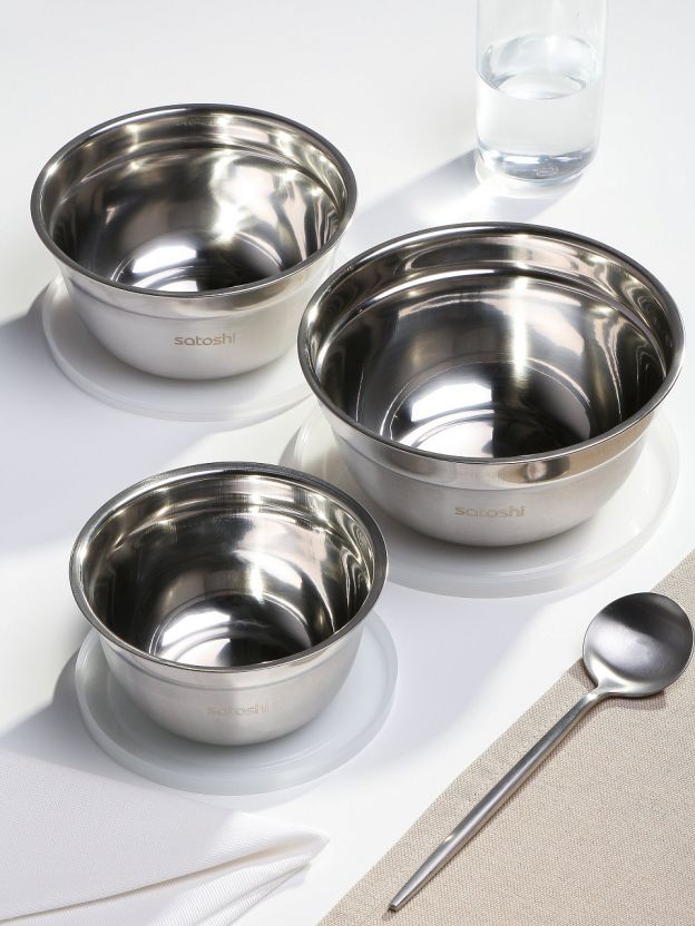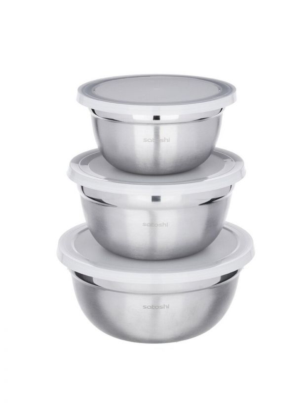 Салатники Satoshi из нержавеющей стали с крышками — универсальный набор 3 в 1 для кухни, дачи и хранения. Прочные, стильные, подходят для посудомоечной машины.