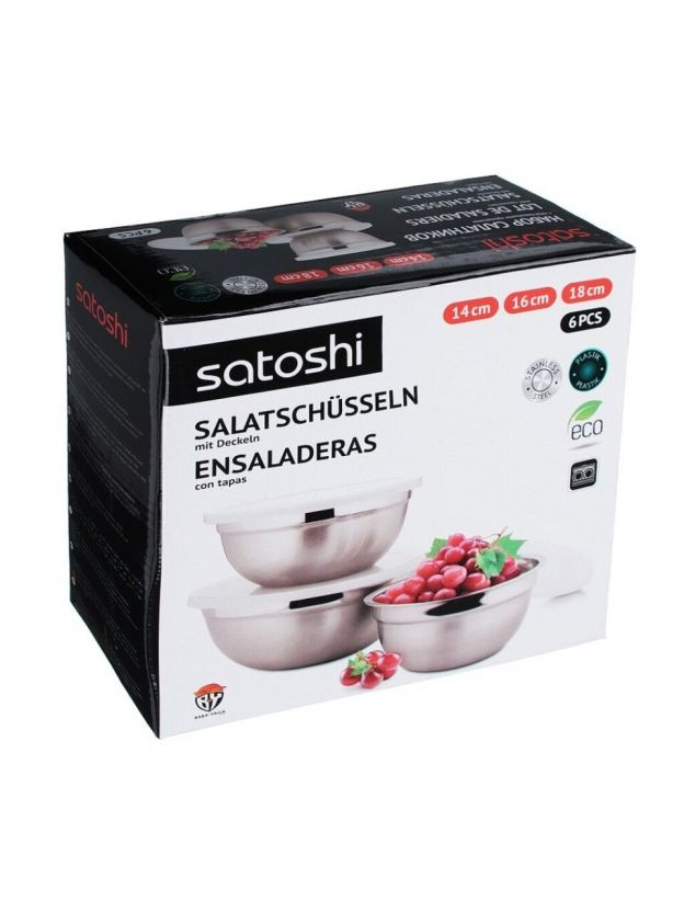 Салатники Satoshi — это надежный выбор для тех, кто ищет прочную и безопасную посуду для ежедневного использования. Благодаря материалу из нержавеющей стали они не впитывают запахи, легко очищаются и подходят для мытья в посудомоечной машине. Крышки плотно закрывают содержимое, что удобно для хранения салатов, закусок, фруктов или овощей как дома, так и на даче.