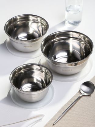 В комплекте три салатника: 14, 16 и 18 см в диаметре. Это оптимальные размеры для разных задач на кухне.