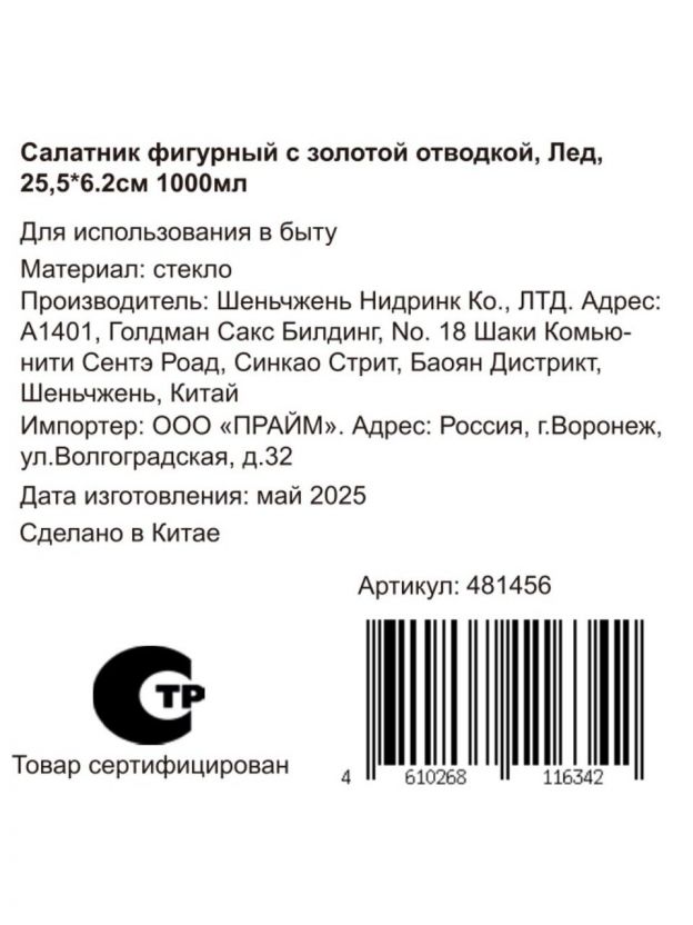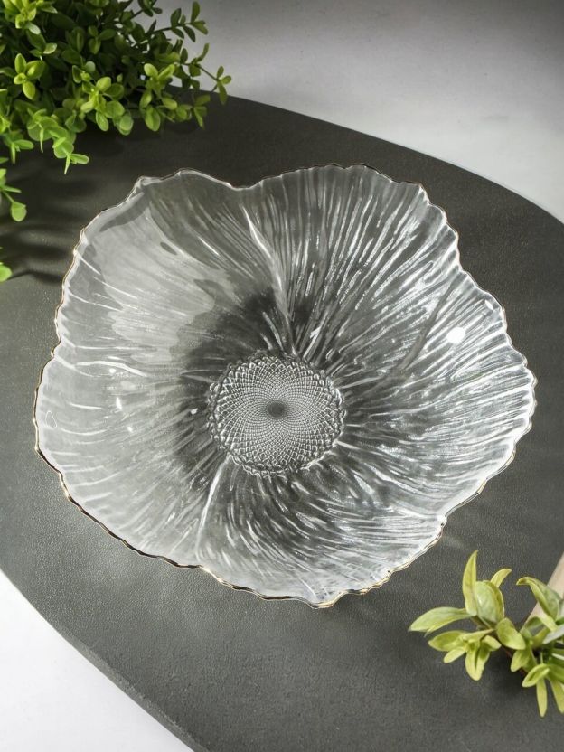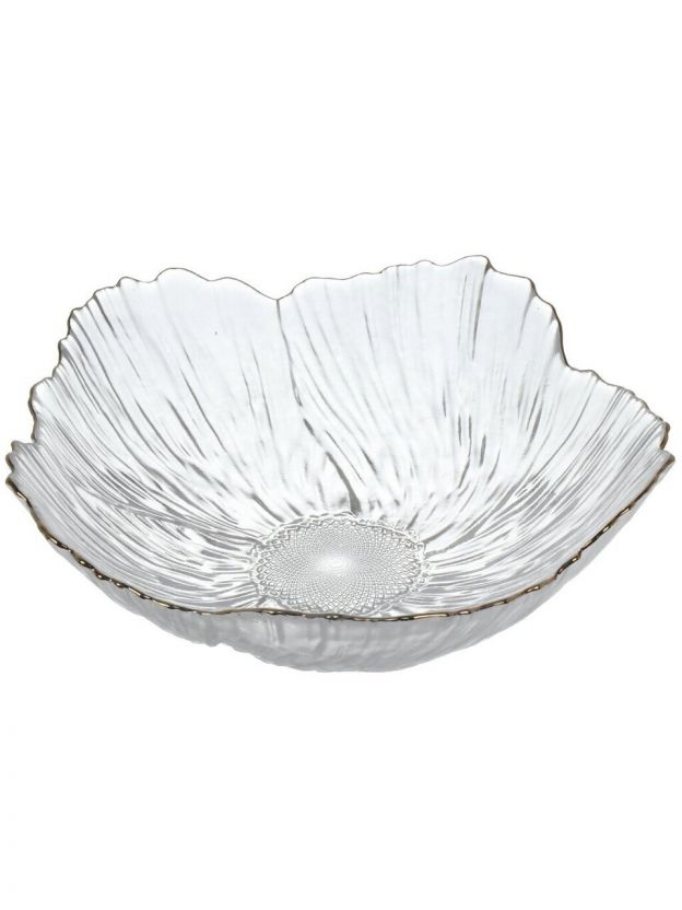 Салатник стеклянный фигурный 1 л с золотой отводкой — стильное решение для сервировки, эффектно подаёт салаты и закуски, не впитывает запахи, легко мыть.