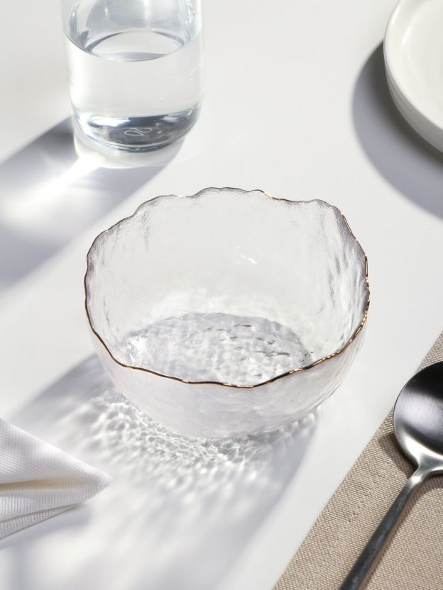 Салатник из стекла «Алмаз» 0.3 л с золотой окантовкой — элегантное решение для сервировки: стильный дизайн, прочное стекло, оптимальный размер для салатов и закусок.