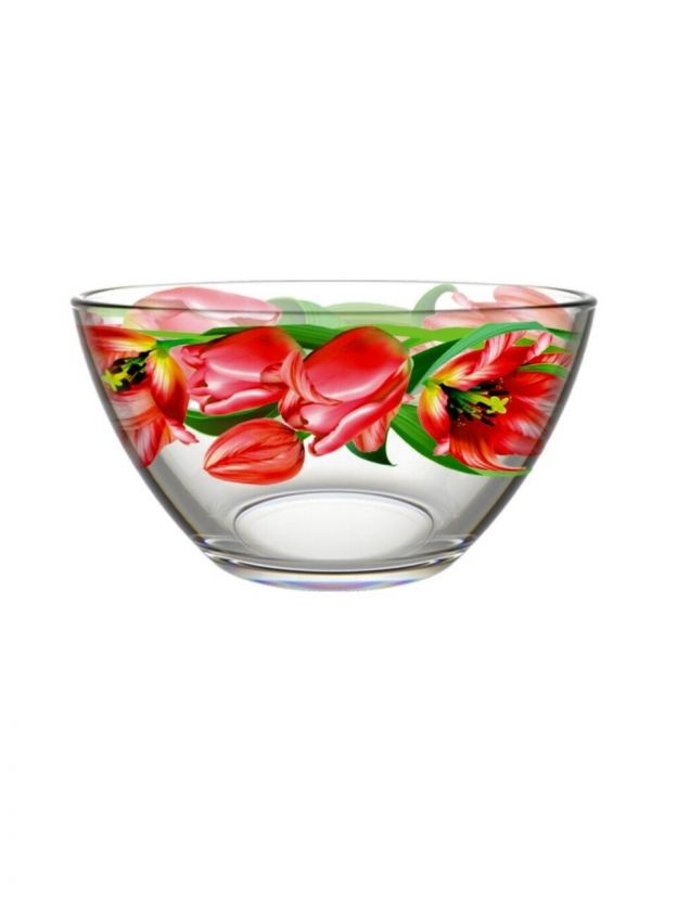 Салатник стекло, круглый, 19х11 см, 1.5 л, большой, Тюльпаны, Декостек, 326/1-Д