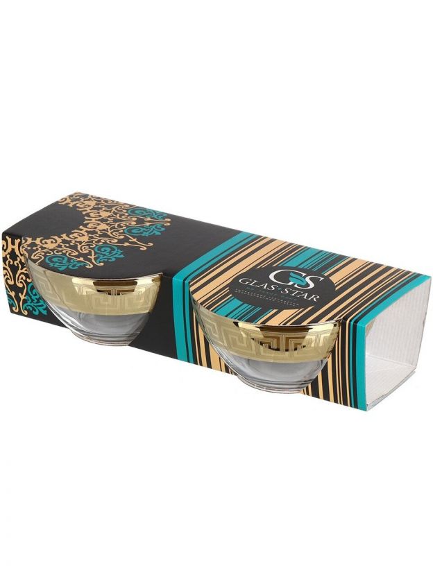 Салатники Glasstar “Греция” 2 шт — стекло с золотой окантовкой, стильный подарок для дома и дачи. Идеальный размер 7,8 см, премиальный дизайн, выгодная цена.