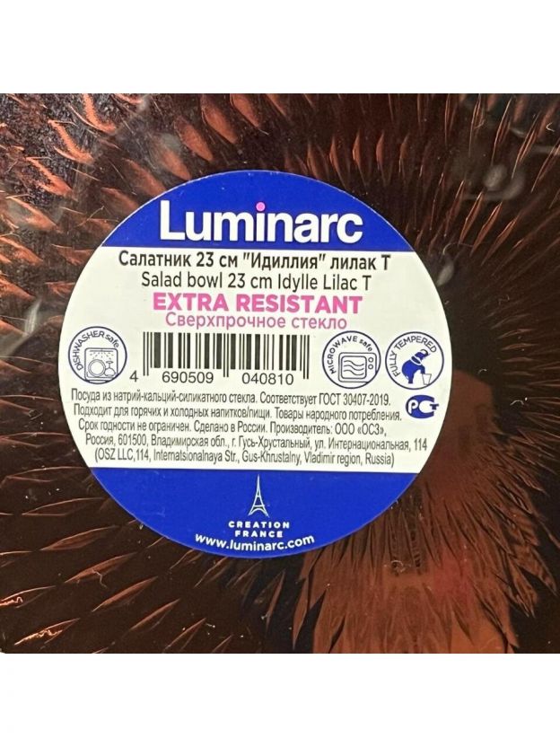 Стильный салатник из стекла Luminarc Idylle Lilac 23x9 см: идеальный выбор для сервировки, безопасен для СВЧ, легко моется, подходит для дома и дачи.