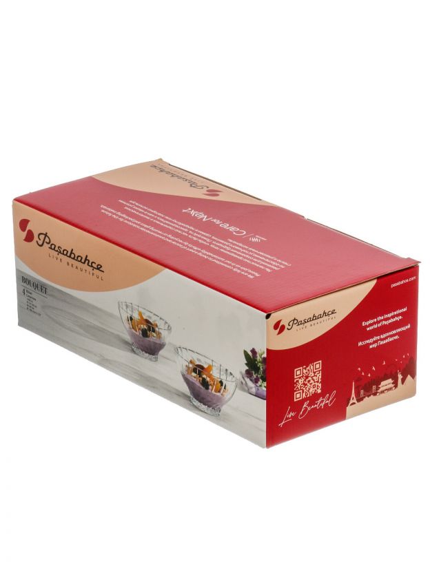 Салатники Pasabahce Букет — набор из 4 стильных круглых стеклянных мисок 0,5 л для сервировки и хранения. Универсальное решение для дома и подарка.