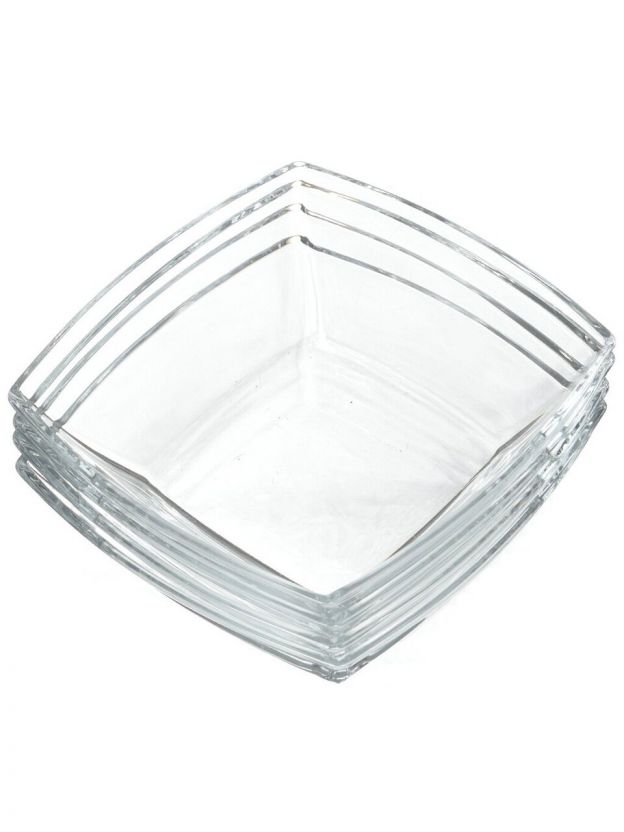 Салатники квадратные Pasabahce Tokio 16х16 см — стеклянный набор 4 шт для стильной сервировки стола дома и на даче. Прочный, универсальный, легко моется.