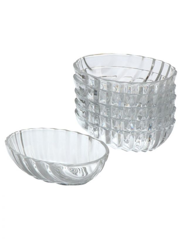 Салатники из стекла Kaveh Santa — набор из 6 овальных мисок 14x10x4,5 см: универсальное решение для сервировки и хранения, прочное стекло, легко мыть