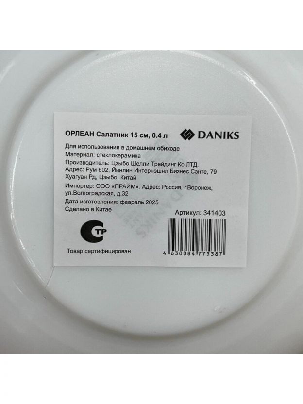 Салатник стеклокерамика, круглый, 15х5 см, 0.4 л, Орлеан, Daniks, BY13LHW60