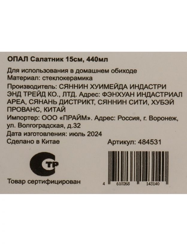 Салатник из стеклокерамики 15 см — универсальное решение для сервировки, хранения и подачи блюд. Безопасен для микроволновки и посудомоечной машины.
