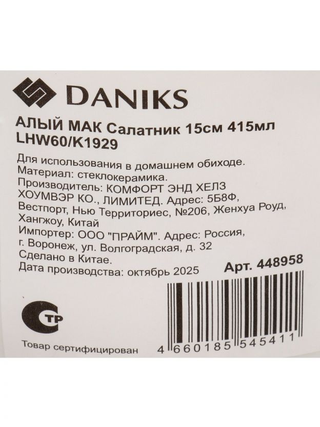 Стеклокерамический салатник Daniks «Алый мак» 15 см — стильный акцент для сервировки, подходит для СВЧ и посудомоечной машины. Решение для дома и дачи по выгодной цене.