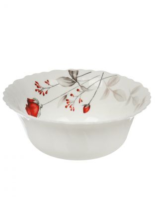 Диаметр — 15 см, высота — 5 см, объём — 415 мл. Круглая форма без крышки, материал — стеклокерамика с цветочным рисунком.