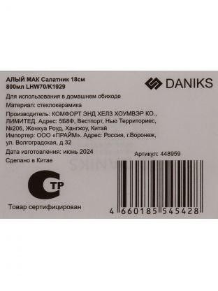 Часто спрашивают, чем отличается стеклокерамика от стекла или пластика. В отличие от аналогов, этот материал не впитывает запахи, не тускнеет со временем и выдерживает перепады температур. Модель Daniks «Алый мак» выполнена в стиле прованс и украшена ярким цветочным рисунком, что делает её универсальным решением для праздничного и повседневного стола. Если вы интересуетесь, подходит ли салатник для горячих блюд — да, он безопасен для СВЧ и не деформируется при нагреве.