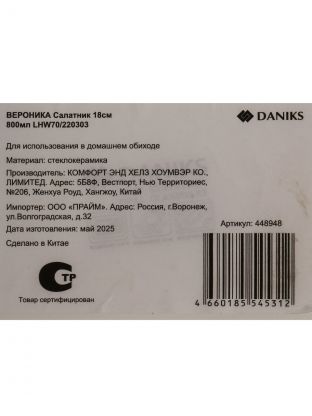 Стильный салатник из стеклокерамики 0.8 л Daniks Вероника — идеальный выбор для сервировки, хранения и подачи блюд дома и на даче. Устойчив к сколам, подходит для СВЧ и посудомоечной машины.