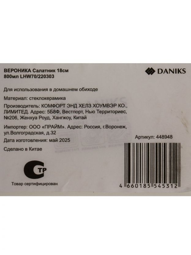 Салатник из стеклокерамики Daniks Вероника — это современное решение для сервировки салатов и холодных закусок. Благодаря прочному материалу, изделие устойчиво к перепадам температур и подходит для использования в микроволновой печи и посудомоечной машине. Если вы ищете, какой салатник выбрать для ежедневного использования или праздничной сервировки, обратите внимание на сочетание долговечности и эстетики: стеклокерамика не впитывает запахи и легко очищается.
