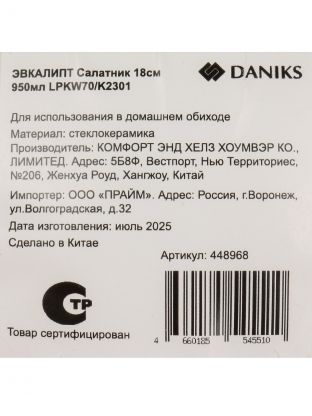 Сделайте выбор в пользу салатника Daniks Эвкалипт — закажите онлайн по выгодной цене и оцените удобство, стиль и безопасность современной посуды для дома и дачи.