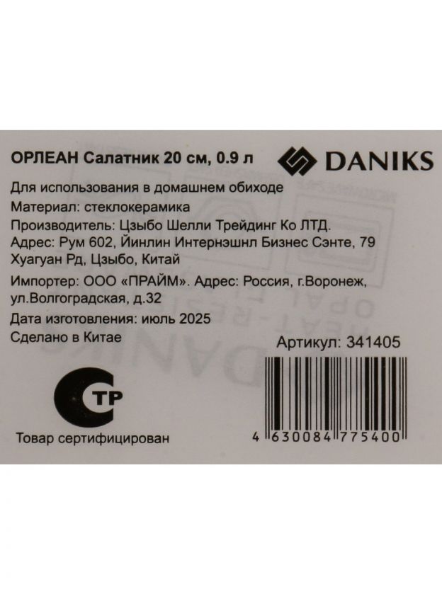 Салатник Daniks Орлеан 0.9 л из стеклокерамики — стиль прованс, прочность и универсальность для дома и дачи по выгодной цене.