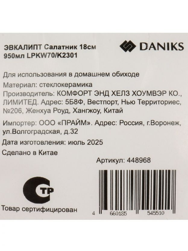 Оцените преимущества стеклокерамического салатника Daniks — выгодное соотношение цены и качества, быстрая доставка и гарантия оригинальности товара. Закажите сейчас и получите стильный акцент для вашей кухни или отличный подарок для близких.
