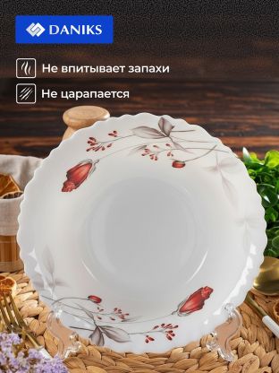 Элегантный салатник из стеклокерамики Daniks Вероника 2 л — стильный выбор для сервировки, устойчивый к царапинам и перепадам температур.