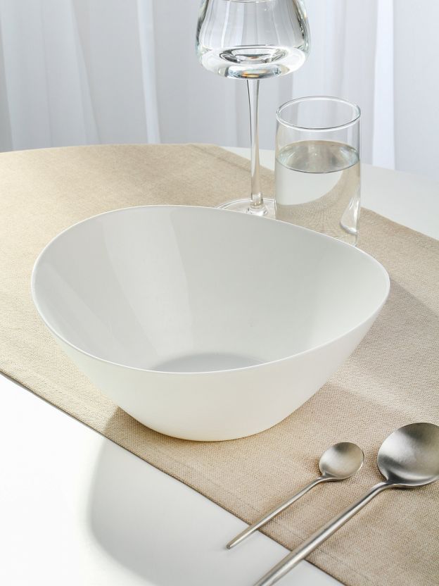 Диаметр 25 см, высота 10 см, объём 2 литра. Этого достаточно для сервировки салатов, гарниров или фруктов на 4-6 персон.