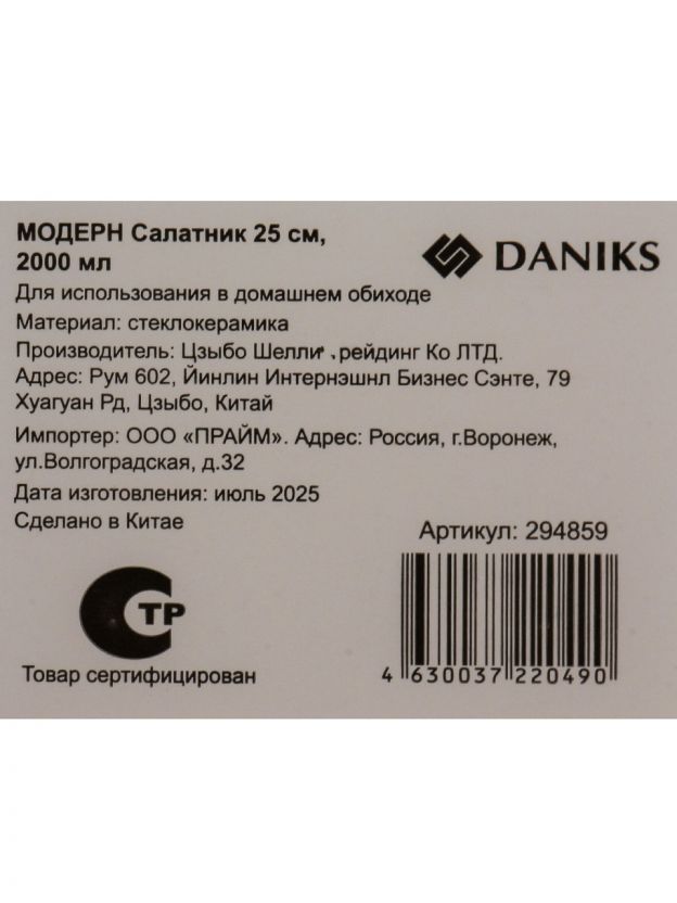 Салатник стеклокерамика Daniks Модерн 2 л: универсальный выбор для дома и дачи. Стильно, безопасно, подходит для СВЧ и посудомоечной машины.