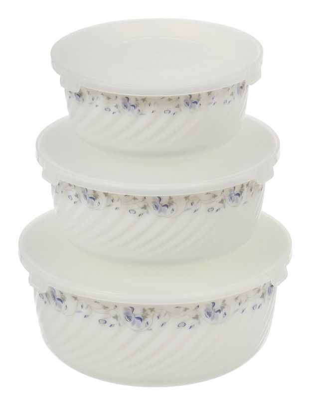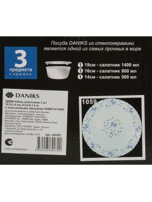 Салатник стеклокерамика, круглый, 3 шт, 9 см, 19, 16, 14 см, 0.5, 0.8, 1.4 л, с крышкой, Эдем, Daniks, W-3X1059/245501