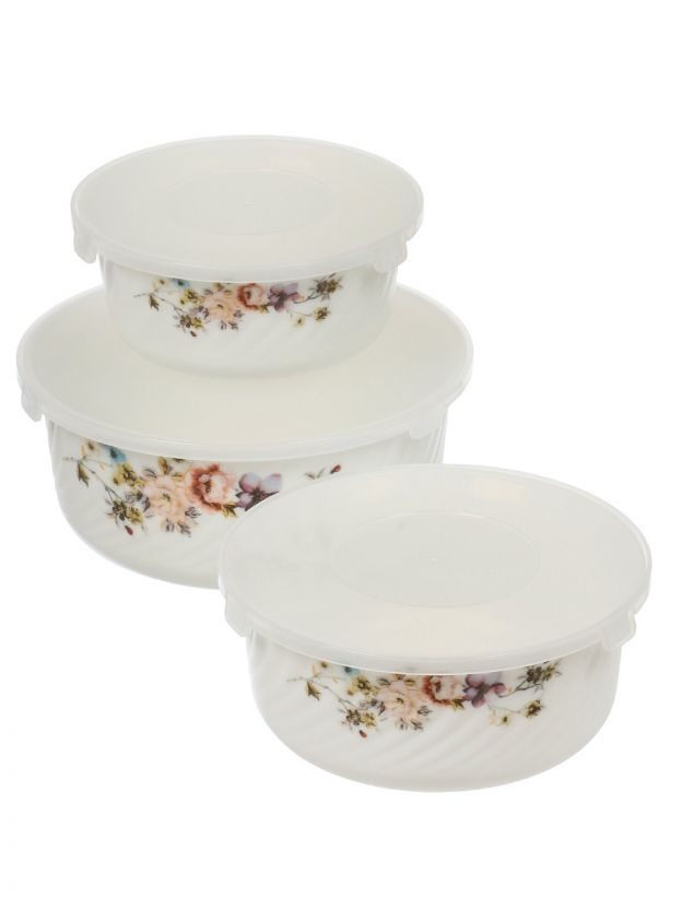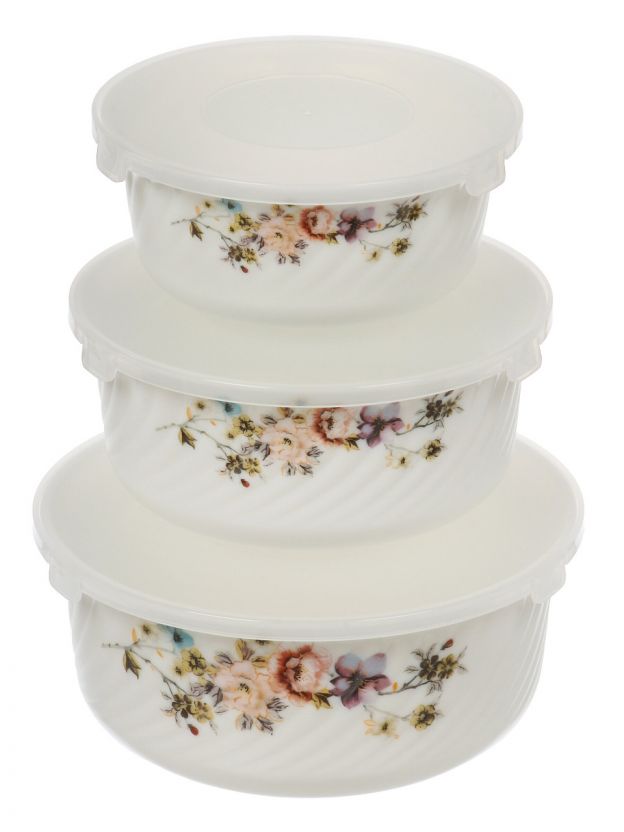 Салатник стеклокерамика, круглый, 3 шт, 9 см, 19, 16, 14 см, 0.5,0.8,1.4 л, с крышкой, Эмилия, Daniks