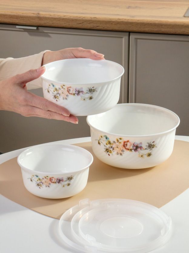 Чем отличается этот набор от аналогов? В отличие от обычных пластиковых салатников, стеклокерамика не впитывает запахи и устойчива к царапинам. Можно использовать в микроволновке и мыть в посудомоечной машине — это экономит время и силы. Дизайн с цветами в стиле прованс делает набор отличным подарком, даже если вы ищете купить недорого салатник для дачи или дома.