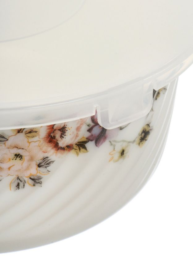 • Уникальное сочетание: прочная стеклокерамика с цветочным рисунком и герметичными крышками — свежесть и эстетика в каждой детали