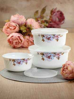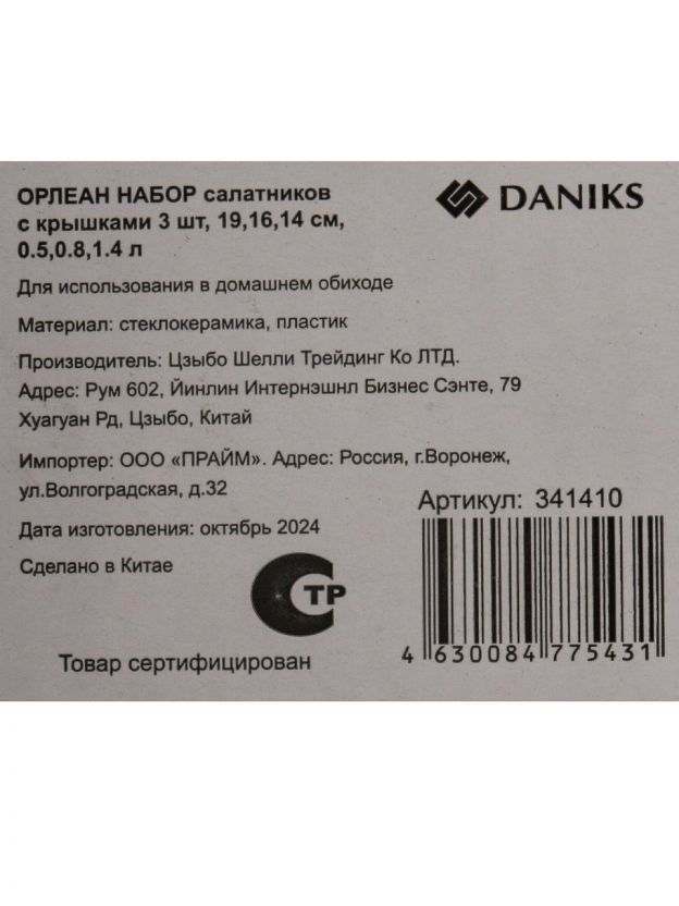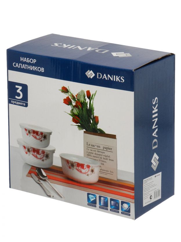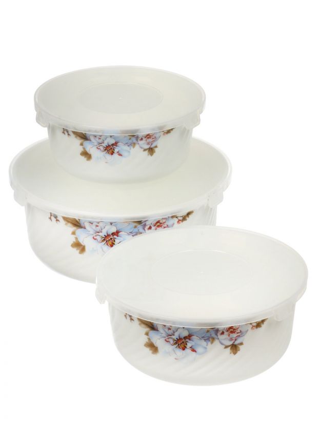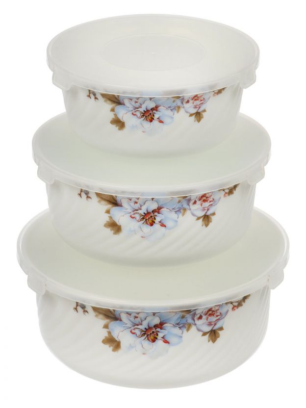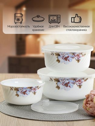 Салатники Daniks Орлеан: стильный стеклокерамический набор 3 в 1 с крышками — для сервировки, хранения и микроволновки. Практичное решение для дома и дачи.