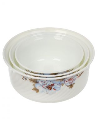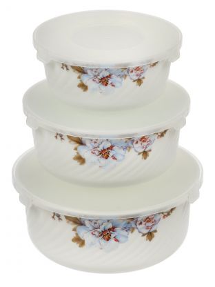 Салатник стеклокерамика, круглый, 3 шт, 9 см, 19, 16, 14 см, 0.5, 0.8, 1.4 л, с крышкой, Орлеан, Daniks, BY14HDW-3-T36