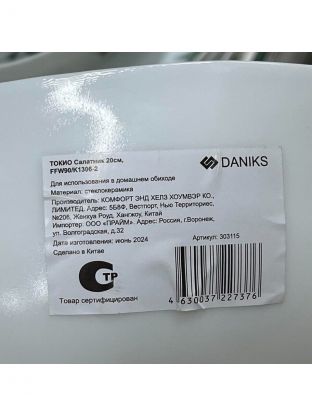 Салатник Daniks выполнен из стеклокерамики — материала, необычайно устойчивого к температурным перепадам. Изящная и легкая стеклокерамика гораздо прочнее стекла и более гигиенична, чем обычная керамика, поскольку имеет идеально гладкую, не пористую поверхность.