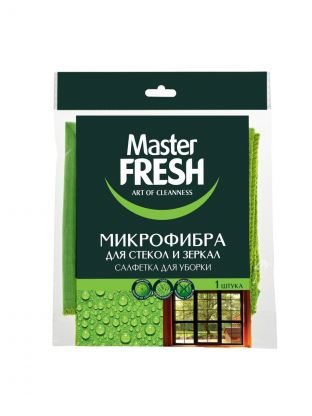Салфетка бытовая для стекол и зеркал, микрофибра, 30х30 см, Master Fresh