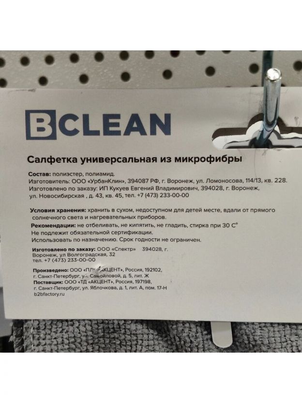 Салфетка бытовая универсальная, микрофибра, 40х35 см, серая, Bossclean