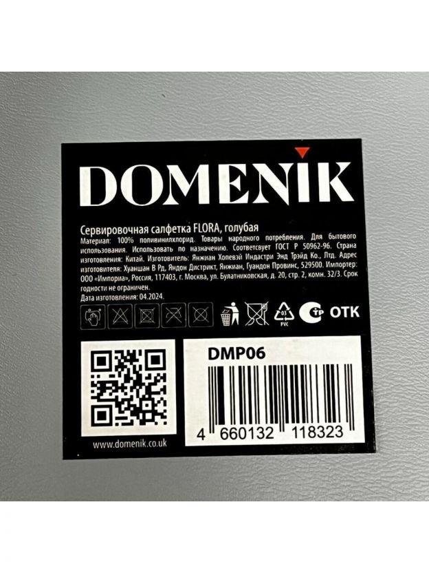 Салфетка декоративная 38х38 см, круглая, голубая, Flora, DMP06